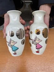 ぶたちゃんシャボン玉柄・フラワーベース(花びん)箔プリント