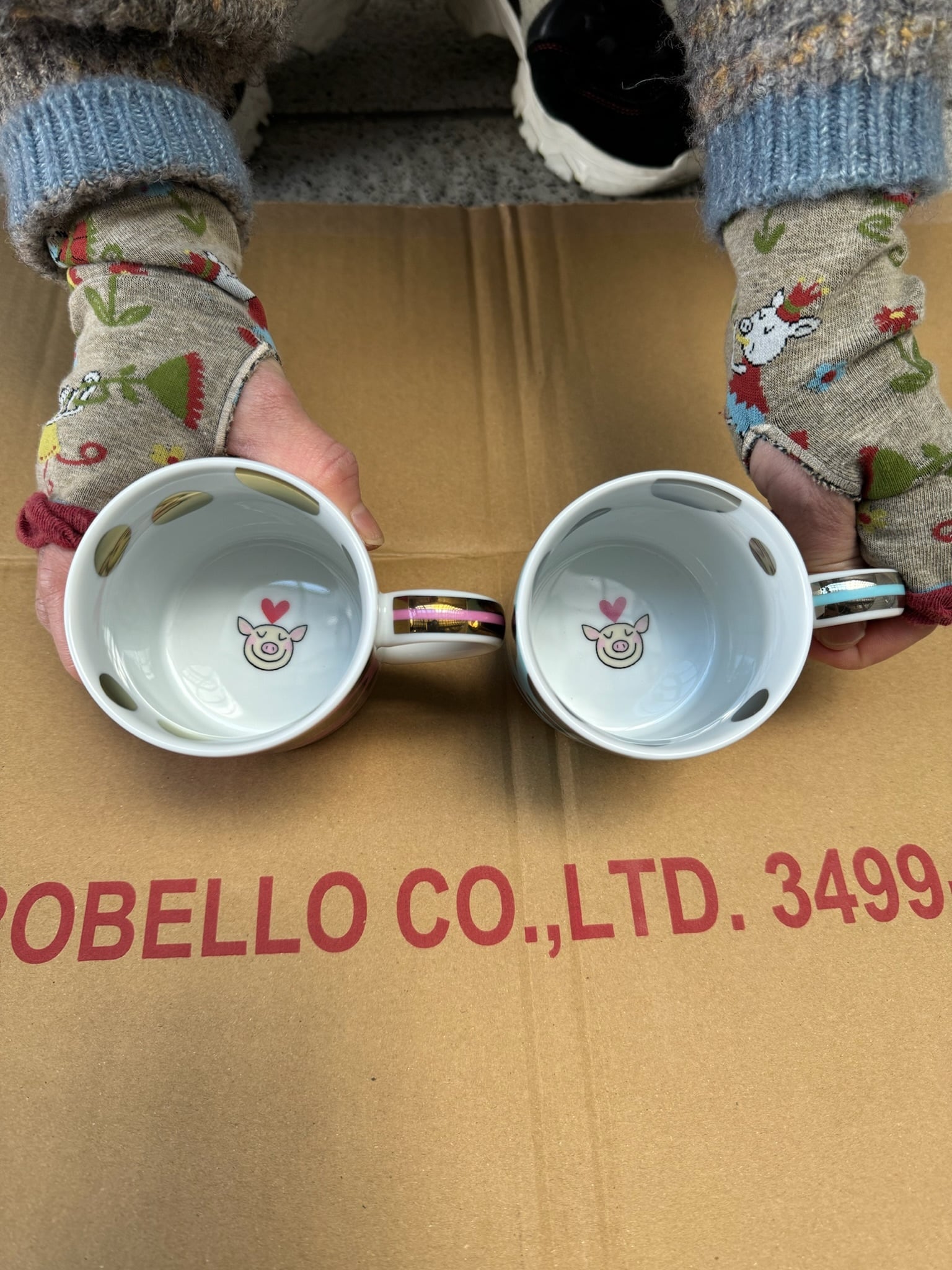 箔プリントのブタさんマグカップ