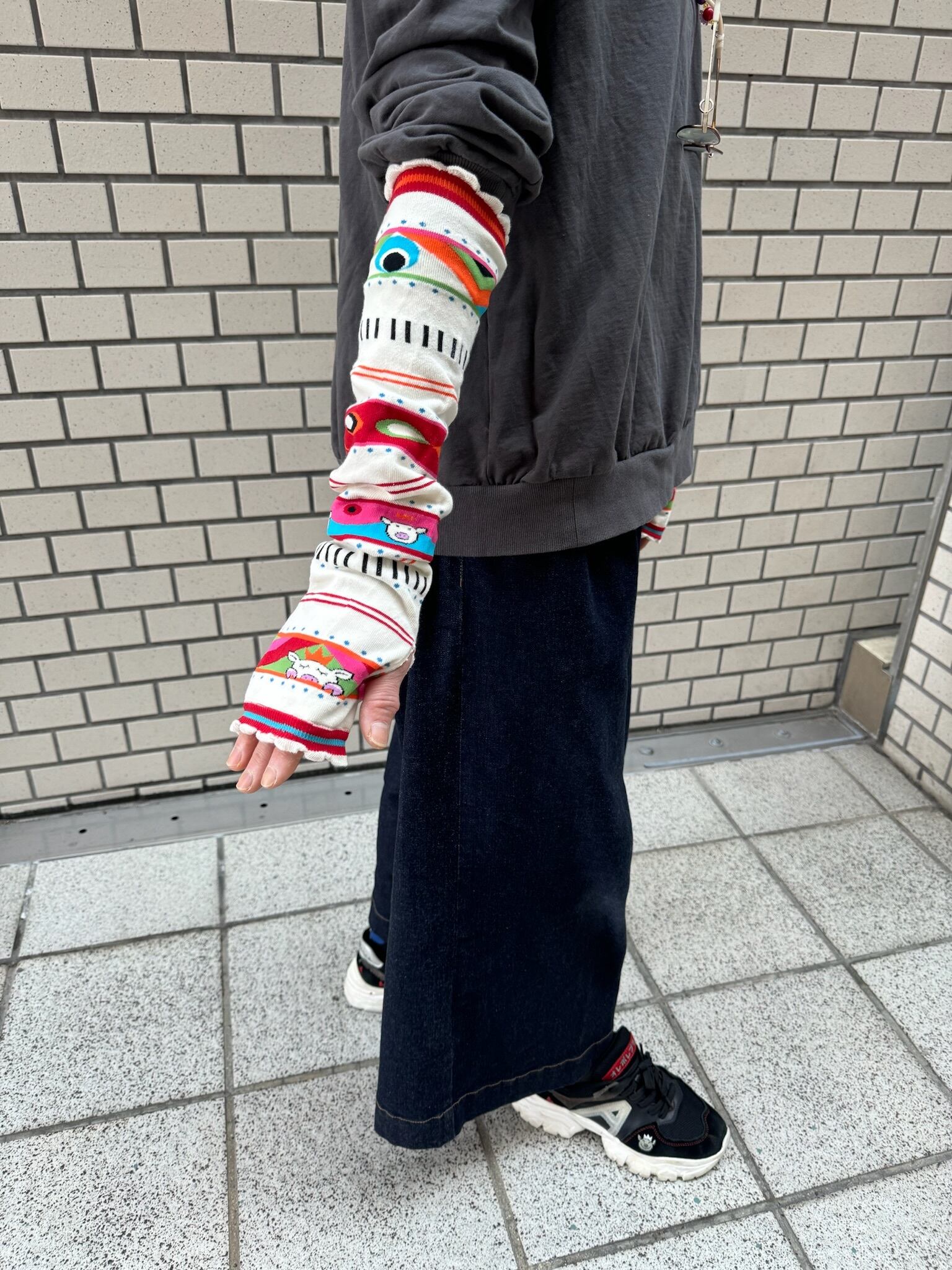 ブタさん柄アームウォーマーは、愛らしいデザインと心地よい着用感が特長のアイテムです! やわらかな素材が肌に優しくフィットし、ファッションに楽しいアクセントを加えます。ユニークなブタさんの柄が目を引き、見る人を笑顔にすることでしょう。普段使いやおしゃれな外出はもちろん、リラックスタイムにもぴったりです。