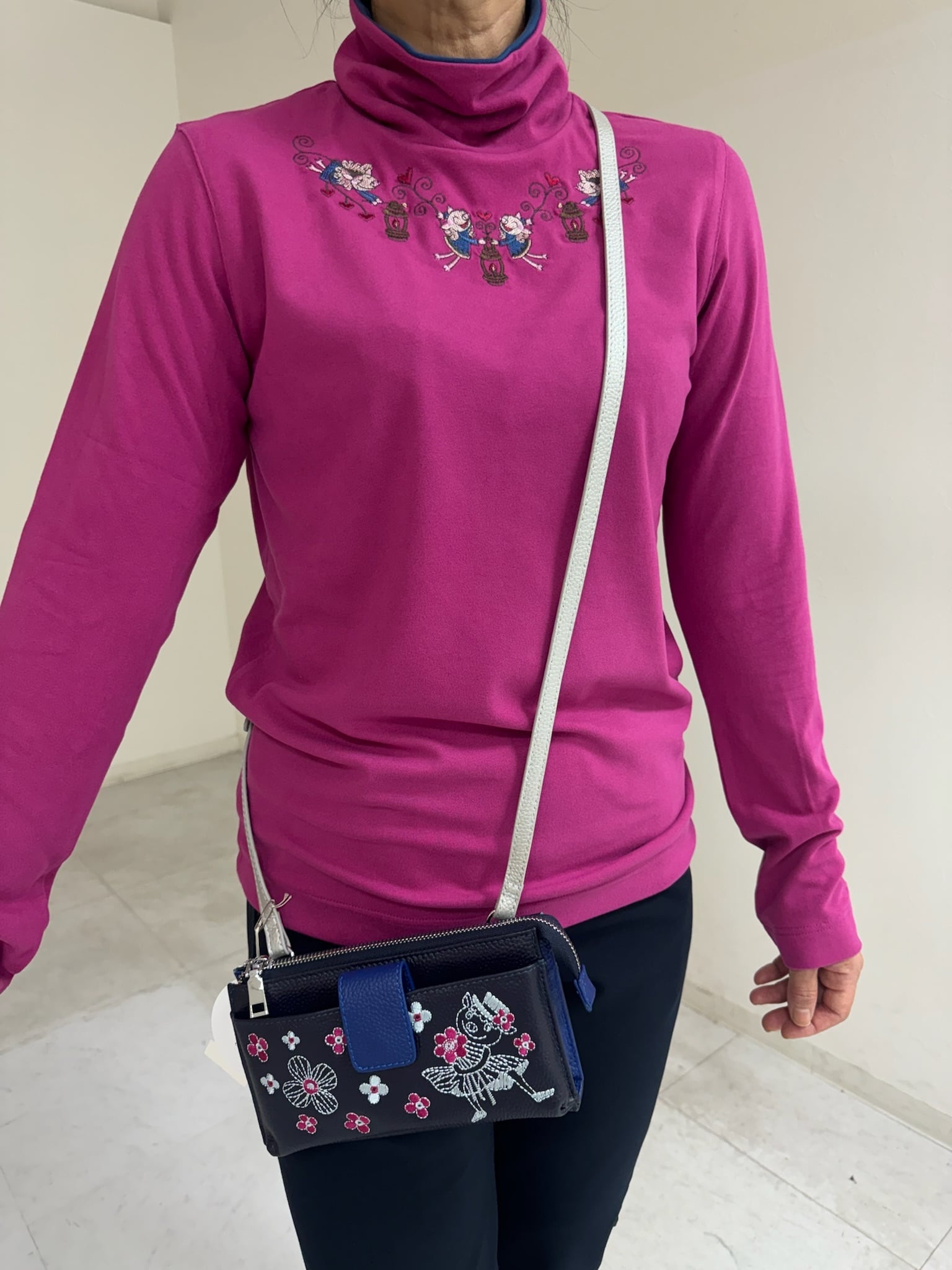 ぶたさんとお花のミシン刺繍のレザーフラグメントケース