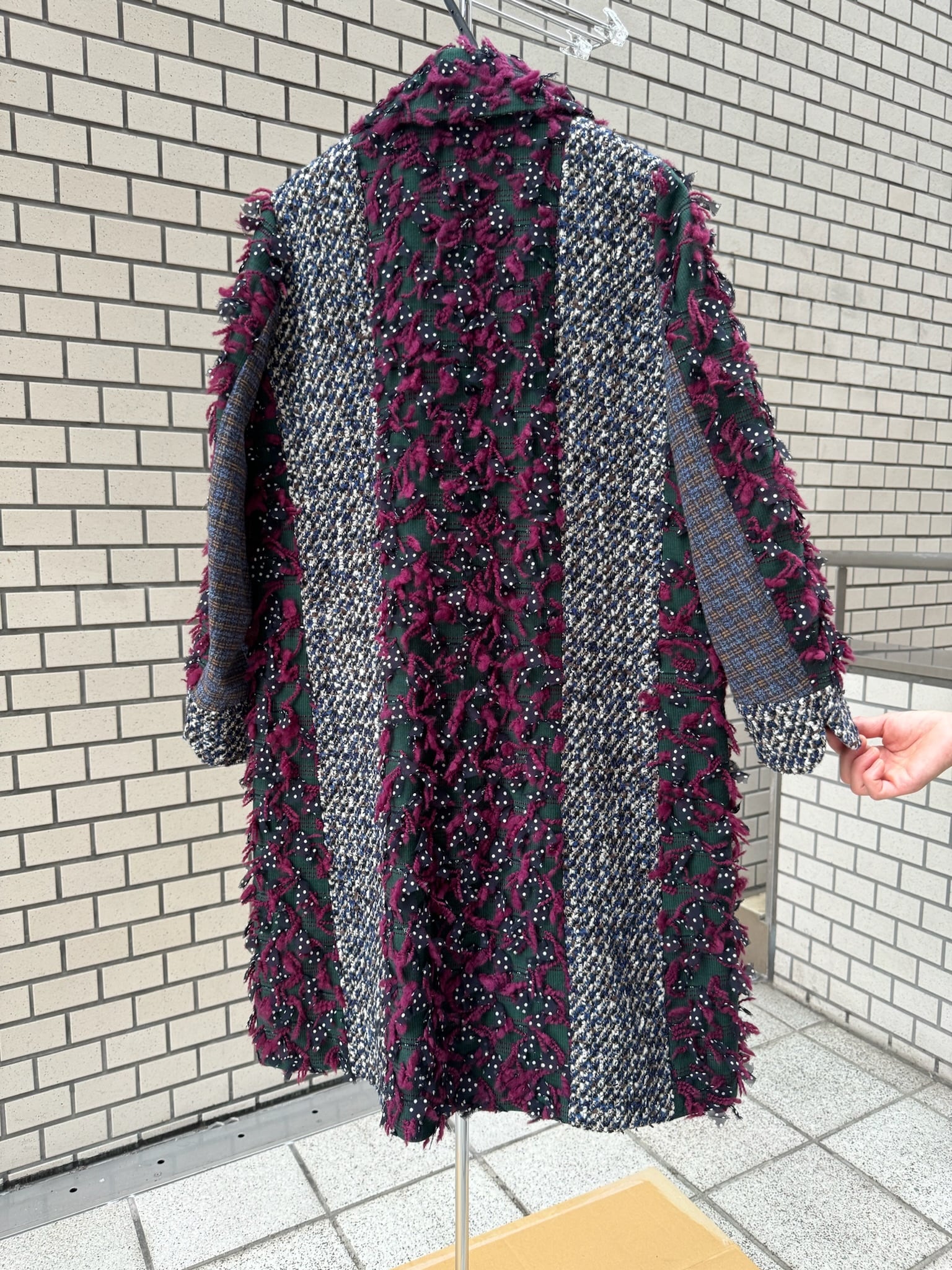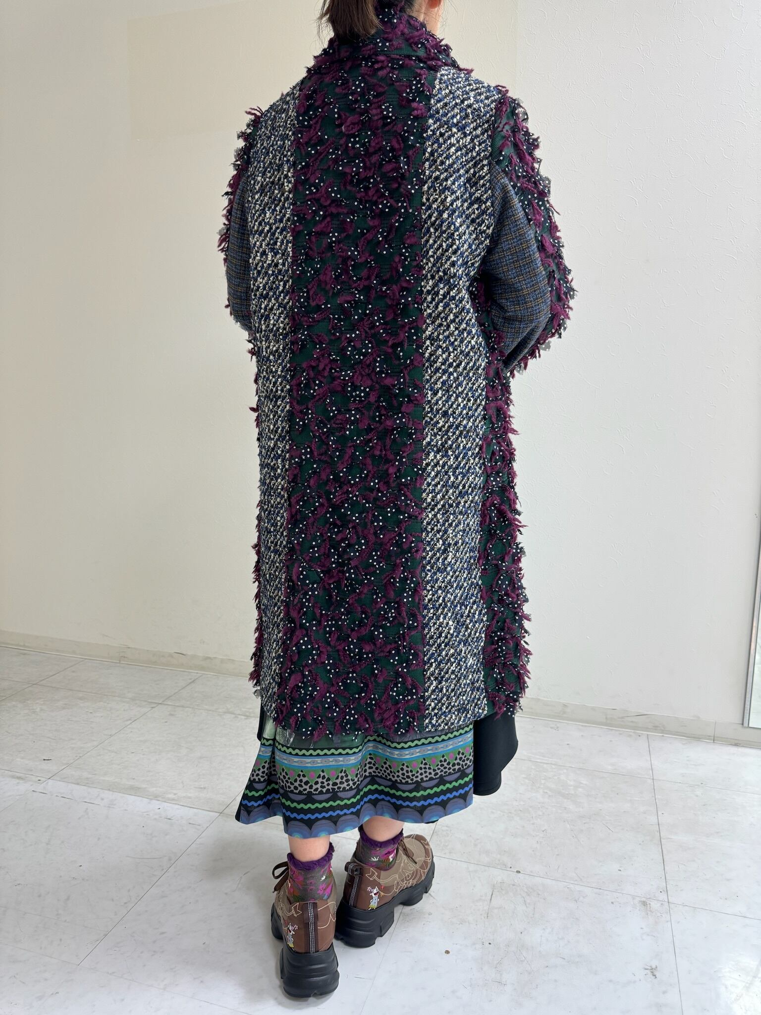 リボンツィード・パッチワークMIX☺︎ブタさんとランタンのアップリケ刺繍コート♪