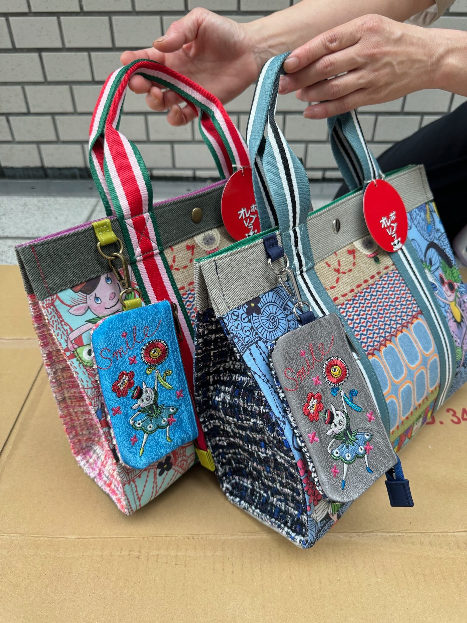 ぶたさんとお花のミシン刺繍のパッチワークバッグポーチ付は、可愛らしさと実用性を兼ね備えたアイテムです!