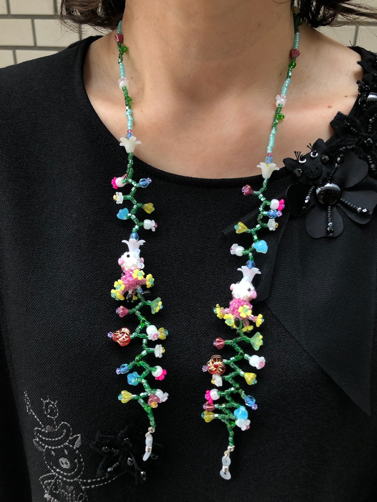 ブタさん+小さなお花のメガネホルダー