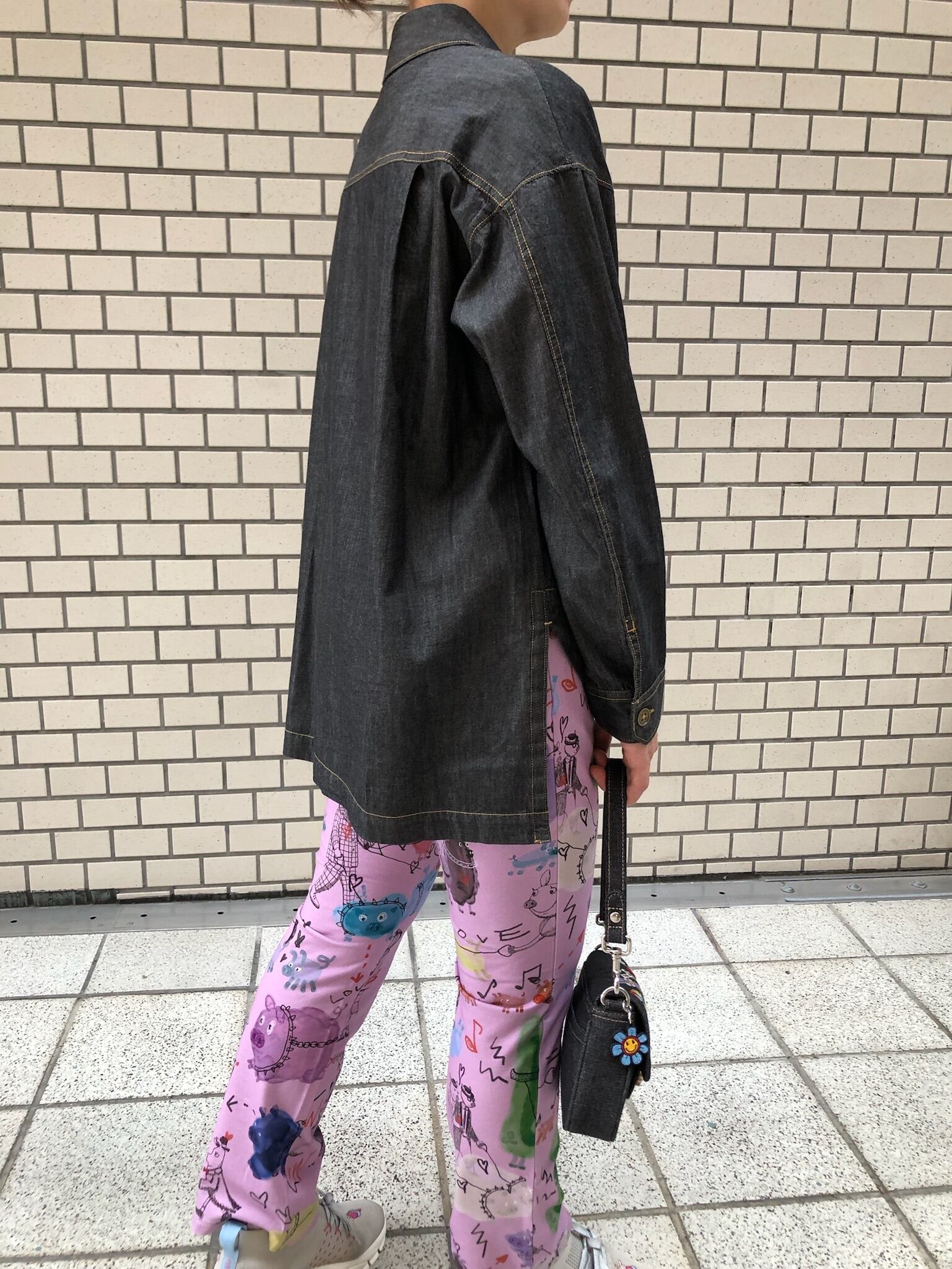 「デニム ブタさんとお花刺繍シャツブラウス」は、個性的なデザインが特徴のシャツブラウスです。デニム素材に可愛らしいお花刺繍が施されたブサさんのイラストの刺繍がポイント。シンプルながらも遊び心あふれるデザインで、コーディネートにアクセントをプラスしてくれます。
